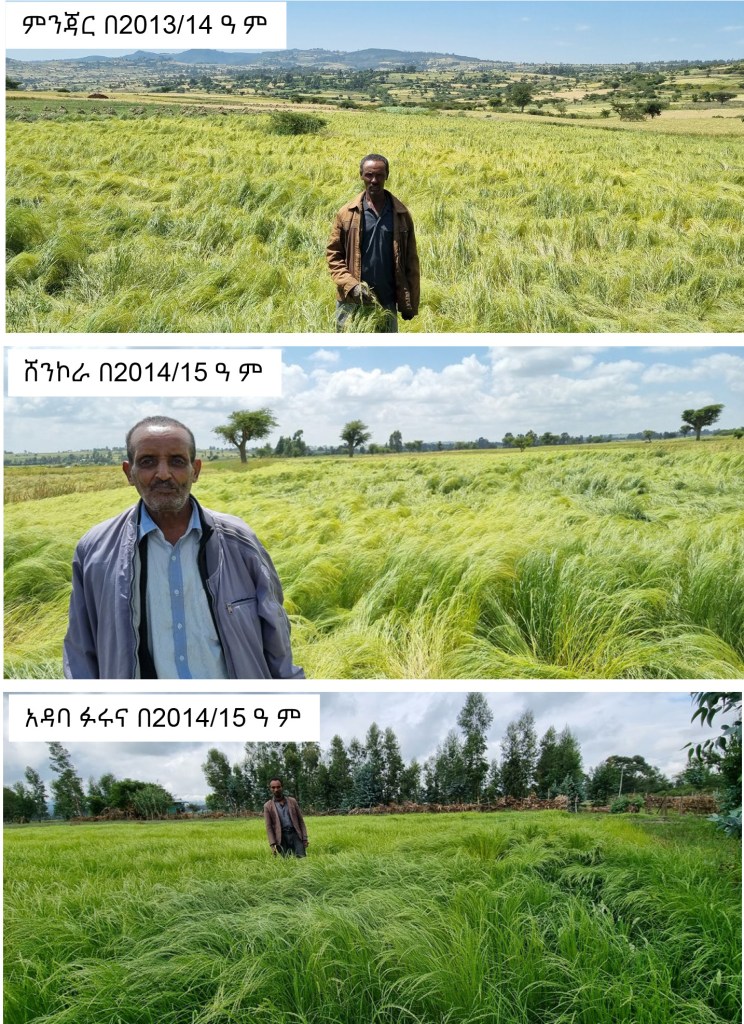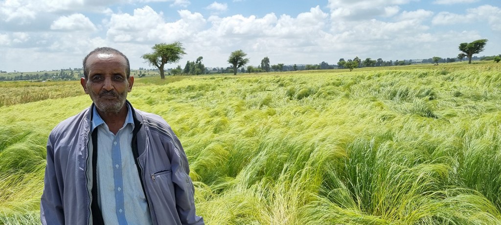 ምስሉ የሚያሳየዉ በምንጃር ሸንኮራ ወረዳ ውስጥ የተዘራዉና በገበሬዎች ዘንድ ተፈላጊ እየሆነ በመጣዉ የኤባ የጤፍ ዝርያ ፊት ለፊት ዶ/ር ክበበው አሰፋ የተነሱት ነዉ ፡፡ ፎቶ ዘሪሁን ታደለ ፣ እ አ አ ኦክቶበር 2022